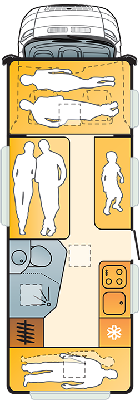 | Bett Dinette: Länge / Breite | 181/125 + 147/66 cm | 190/105 + 137/65 cm |